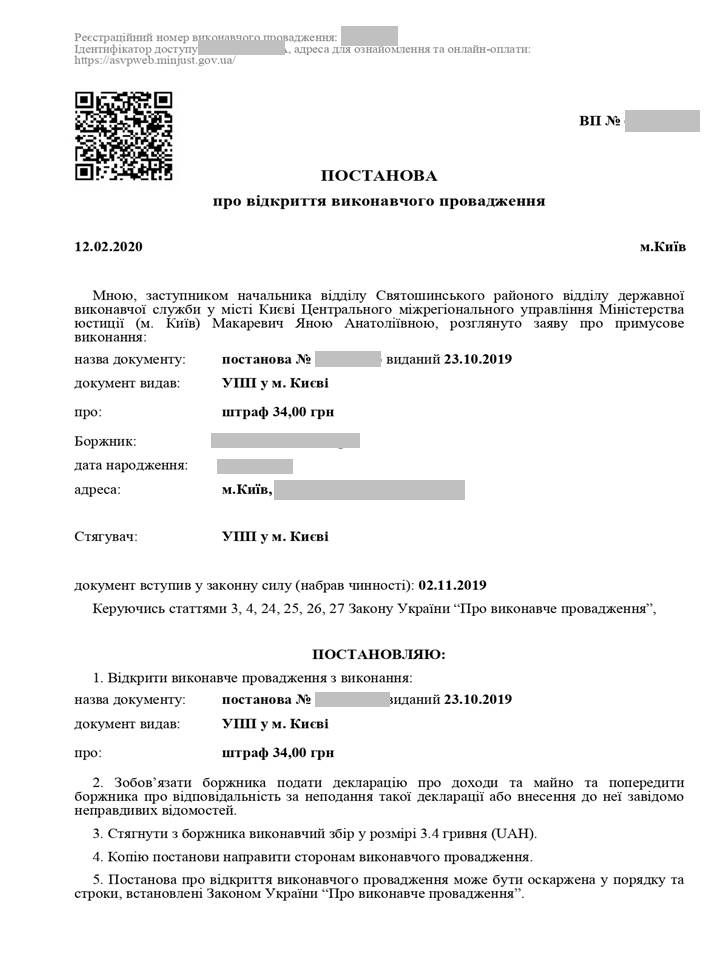за адресою в мережі інтернет https://asvpweb.minjust.gov.ua, де також забезпечена можливість онлайн сплати ( за умови що у вас є постанова про відкриття виконавчого провадження) постанова містить ідентифікатор доступу  у правому нижньому куту тексту чи через QR-код який міститься в лівому верхньому кутку постанови.