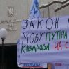 Сьогодні з дев'ятої ранку ВО «Свобода» та громадські активісти вийшли на акцію протесту під будівлю Конституційного суду, вимагаючи скасування закону Ківалова-Колесніченка та відсторонення від участі в розгляді справи декількох суддів.