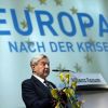 «Зараз на кону стоїть не лише майбутнє України, але й майбутнє Євросоюзу. На моє особисте переконання, якщо Європа втратить Україну, то це матиме колосальну шкоду і дозволить Росії розділяти і владарювати»,- висловився він. На його думку, впливаючи на події, що відбуваються в Україні Росія має мету стати суперником Європейському союзу. Окрім цього він розкритикував «дезінтеграцію Європейського союзу». На його думку в останні роки ЄС перетворився на сукупність «кредиторів і боржників», при тому остання мають великі проблеми із виконанням взятих зобов’язані, а кредитори ставлять умови через які боржнику важко вийти з «підлеглого положення. Крім цього він в черговий раз закликав збільшити фінансову допомогу з боку Європейського союзу Україні і нагадав, що Євросоюз зараз надає допомогу Україні, яка є в рази меншої від допомоги деяким іншим країнам, які потрапили у кризу. На його переконання рівень допомоги для України з боку Європейського союзу є мізерним і не відповідає вимогам теперішнього часу і ситуації, яка зараз є в Україні.